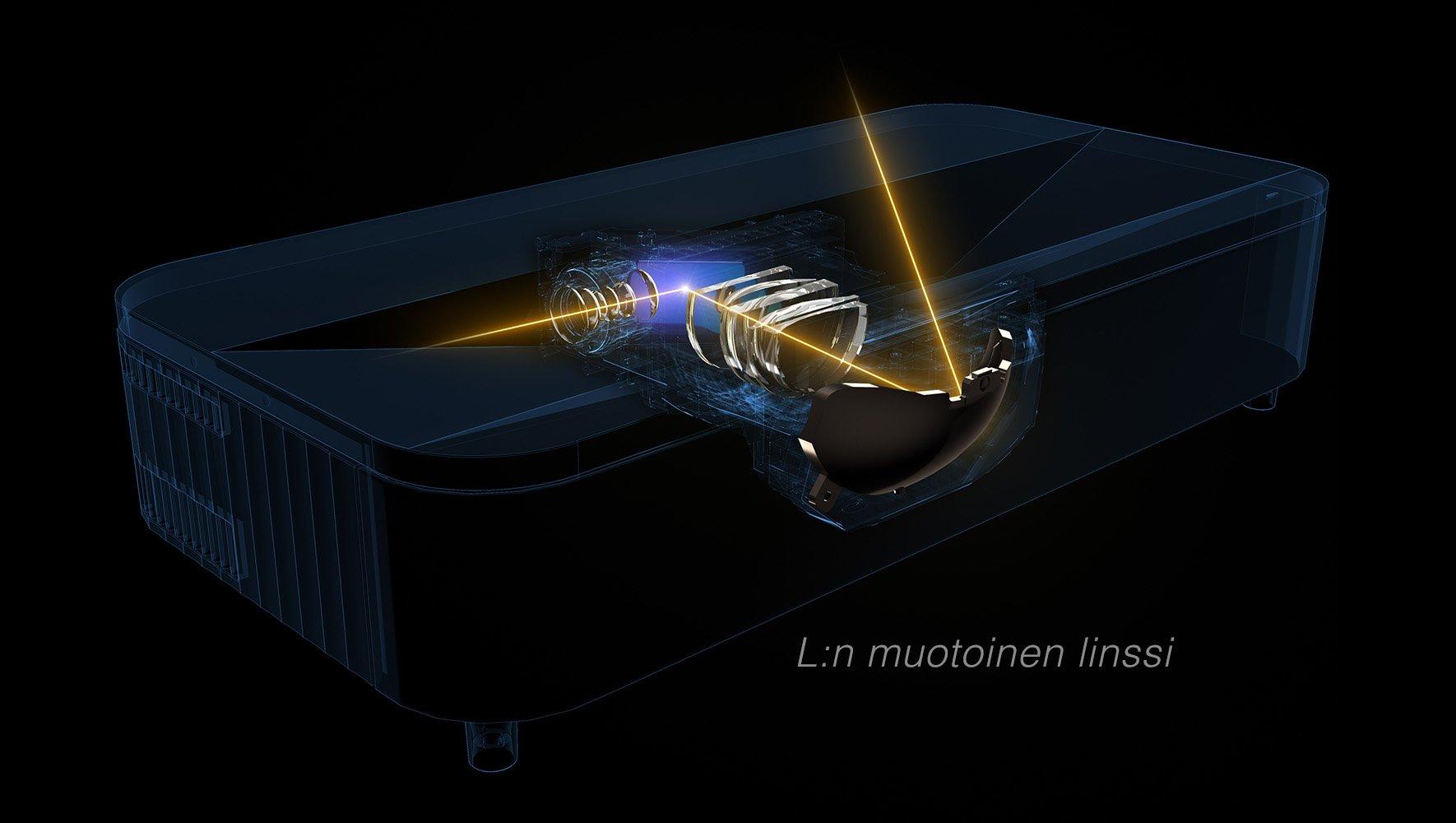 Projektori säätää kuvan kirkkauden yhteen kolmesta tasosta tilan kirkkauden mukaan. Optimoimalla kuvan kirkkauden tuote vähentää silmien rasitusta ja pitää energiahukan kurissa.